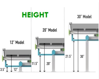 – Drainage: Built-in slope/height adjustments up to 5″ for 20″ and 30″ options, 2.5″ for 12″ option.