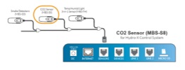 The optional CO2 Sensor (MBS-S8) measures the CO2 PPM within the growing area. Using the MBS-S8 allows the users to connect and control their supplemental CO2 system using the Hydro-X. *Used in combination with one or more DSC-1 CO2 device modules.